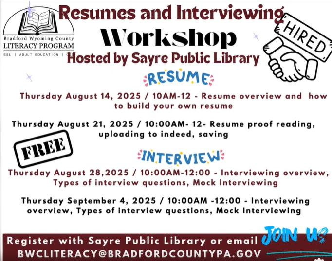 Jan 23 10:00 am - 11:00 pm Event Series Friday Tech Help Sayre Public Library 122 S Elmer Ave, Sayre Event Details Get Directions